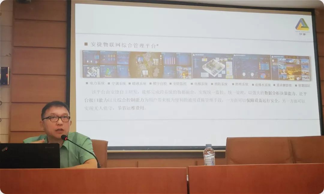 會議由深圳市建筑設(shè)計(jì)研究總院有限公司科技創(chuàng)新委員會秘書長鄭文星致辭,安捷物聯(lián)董事長劉柏呈做了題為《物聯(lián)網(wǎng)在城市建設(shè)和資產(chǎn)運(yùn)營管理中的創(chuàng)新應(yīng)用》的主題演講。