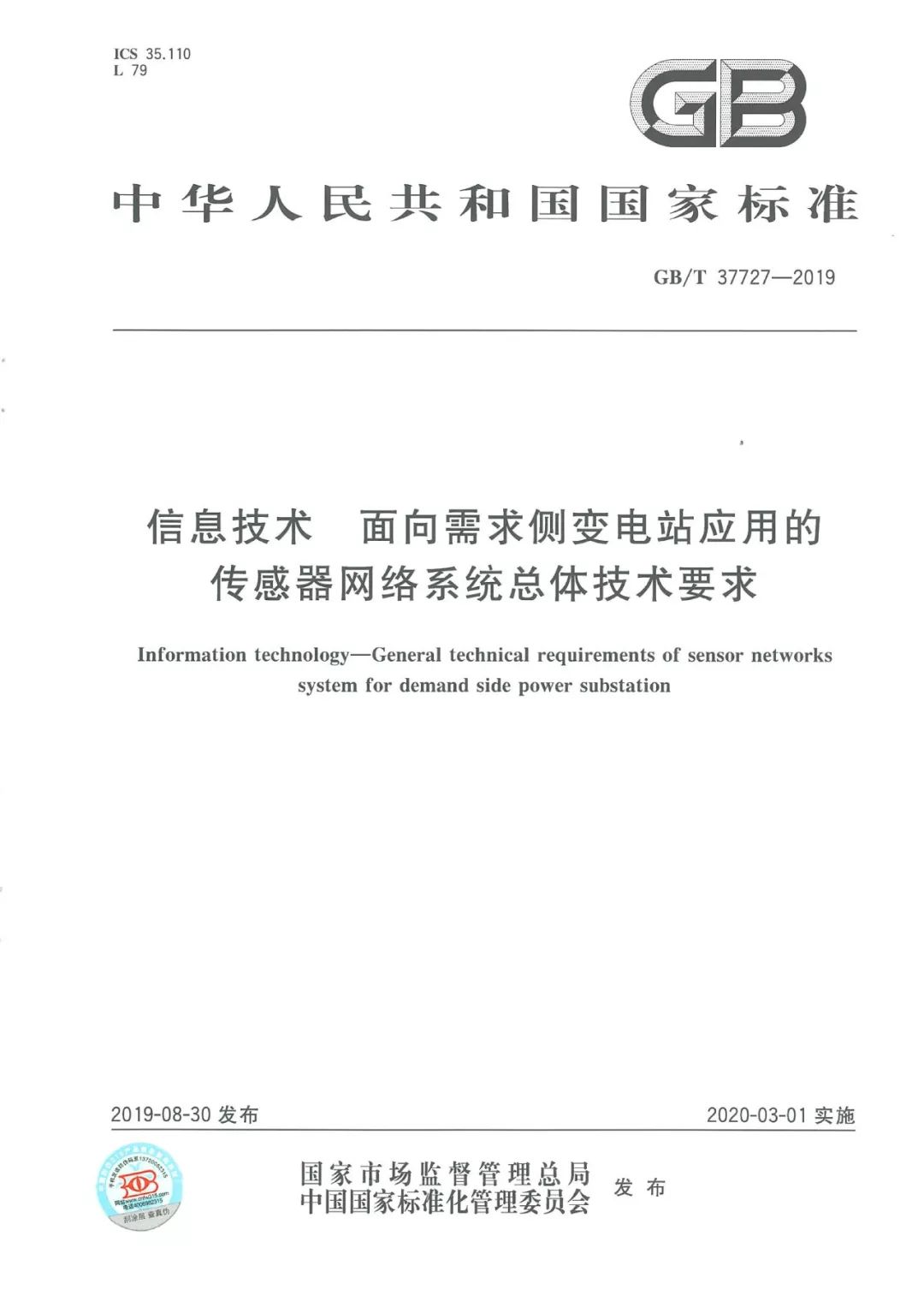 近日,由天津安捷物聯(lián)科技股份有限公司主導制定的《信息技術 面向需求側變電站應用的傳感器網(wǎng)絡系統(tǒng)總體技術要求》已由國家市場監(jiān)督管理總局和中國國家標準化管理委員會納入國家標準,標準編號為:GB-T 37727-2019。該標準于2019年8月30日發(fā)布,將于2020年3月1日開始實施。