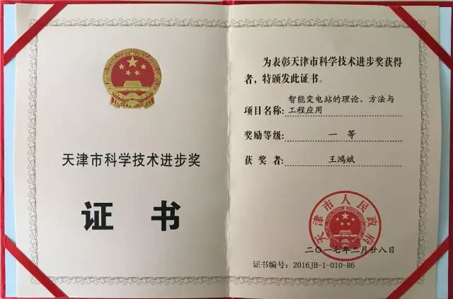 近日,天津市召開2016年度科學技術獎勵大會,本市共有189個項目獲獎。其中,一等獎23項、二等獎57項、三等獎109項,涵蓋了自然科學獎、技術發(fā)明獎和科技進步獎等多個種類。由我公司申報的《智能變電站的理論、方法與工程應用》項目榮獲天津市科學技術進步一等獎,董事長劉柏呈、創(chuàng)新中心副總經(jīng)理王鴻斌分別榮獲天津市科學技術進步個人一等獎。