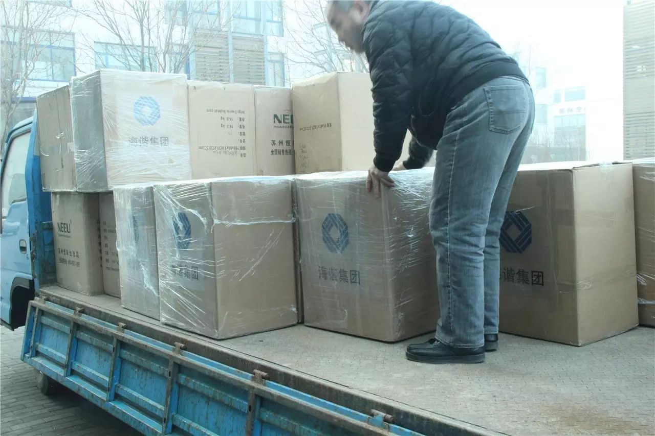 海諧集團(tuán)員工將愛(ài)心物資打包裝箱
